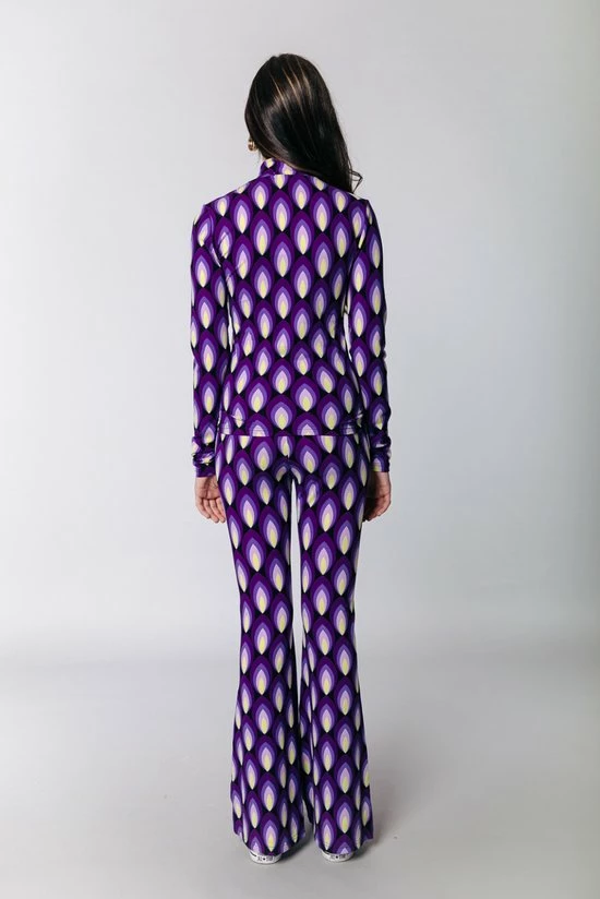 Flare broekVan strak naar uitlopende pijpNormale tailleNormale lengte87% polyester, 13% elastane, Peached jerseyStretch stof30 degree machine wash/ no tumble dry/ line dry/ iron low heath/ no bleachModel is 1.68m en draagt S