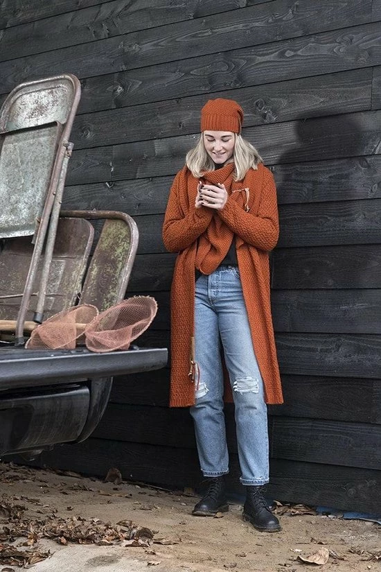 Het Knit Factory Luna lang Gebreid Vest in de kleur Purple is een stijlvol gebreid dames vest. Dit lange, oversized vest, is een musthave voor een nonchalante en tegelijkertijd elegante stijl. Draag hem over een basic shirt of blouse. Dit gebreide vest kan het hele jaar door gedragen worden. In de winter maar ook tijdens een koele avond op het terras of een late strandwandeling. De samenstelling bestaat uit wol en acryl, waardoor het vest warm en tegelijkertijd zacht aanvoelt. Knit Factory Luna is een lang vest, met een openvallende hals en lange mouwen. Het stoere Knit Factory label met nestelring en decoratieve accessoire zorgen voor een opvallende twist. Met dit vest kunt u voor de dag komen. Kleur purple. Maat 36/38