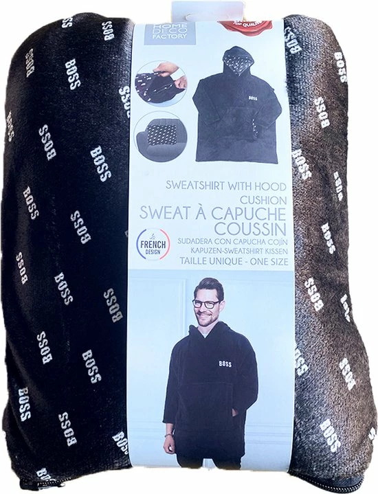 Deze heerlijke zachte hoodie en deken in één houd je warm tijdens aankomende koude dagen. De hoodie heeft een supergrote buidelzak die af te sluiten is met een rits. Door de hoodie/deken in de buidel te stoppen kun je er ook een kussen van maken.