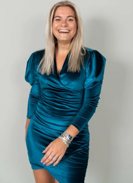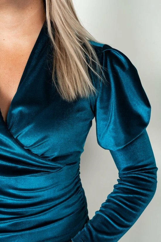 Het is weer die tijd van het jaar! Op zoek naar een leuke jurk voor de feestdagen? Dan is onze Lou jurk het item wat je zoekt. De velvet jurk in 3 kleuren bevat veel stretch, valt tot op de bovenbenen, heeft een v-hals en pofmouwen. Mooie hakken aan en klaar. We hebben de jurk in de kleuren zwart, groen en turquoise.