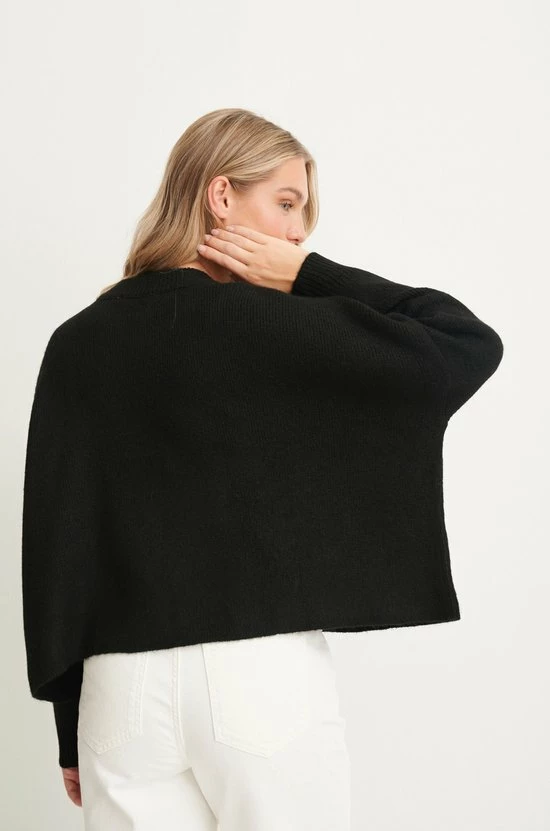 Deze gebreide trui heeft een ronde hals, een oversized pasvorm met normale lengte en wijde lange mouwen. Deze gebreide trui is er in het zwart