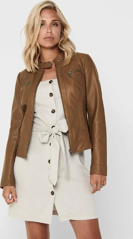 Korting 🎁 Only Jas Onlbandit Faux Leather Biker Otw Noos 15081400 Cognac Dames Maat – 42 👏
