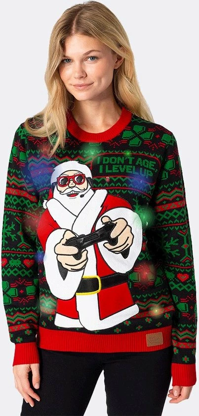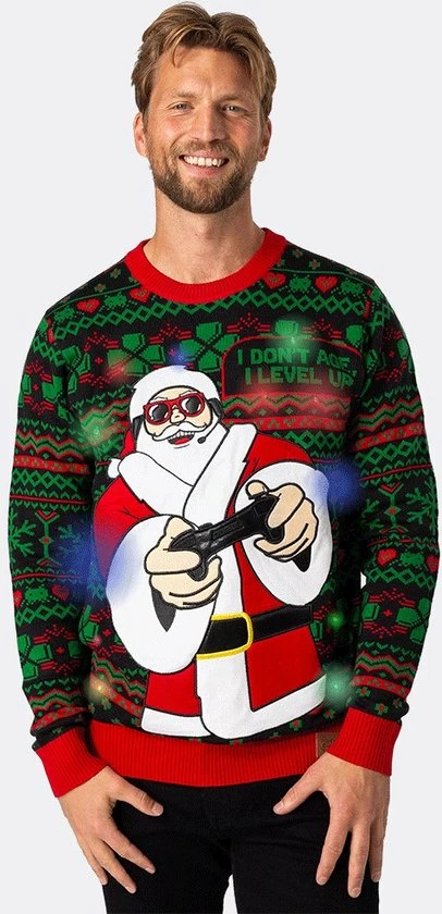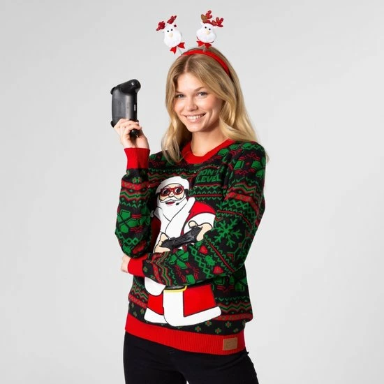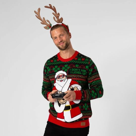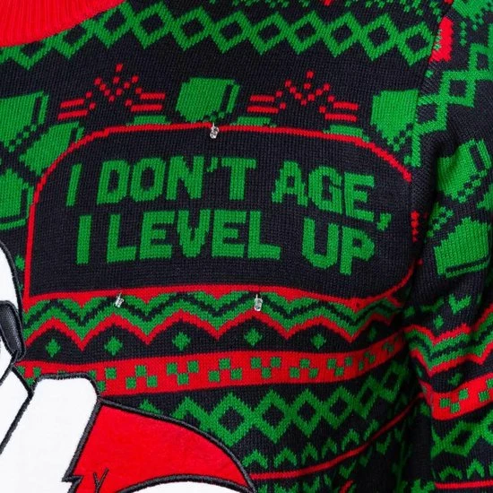 Gamers don’t age, they level up. Dit is de perfecte trui voor alle gamers die er zijn! Gebreid met talloze details die gamers zullen herkennen, samen met een opgenaaide patch van de kerstman zelf midden in een game.
