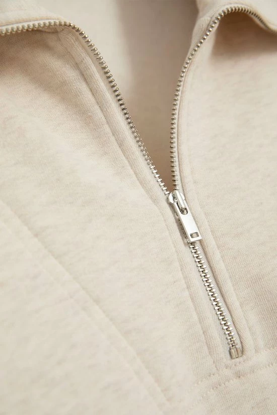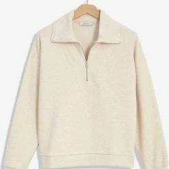 Beige sweater van Sissy-Boy. De sweater heeft een grote kraag met een rits. Hij is gemaakt van 100% katoen.