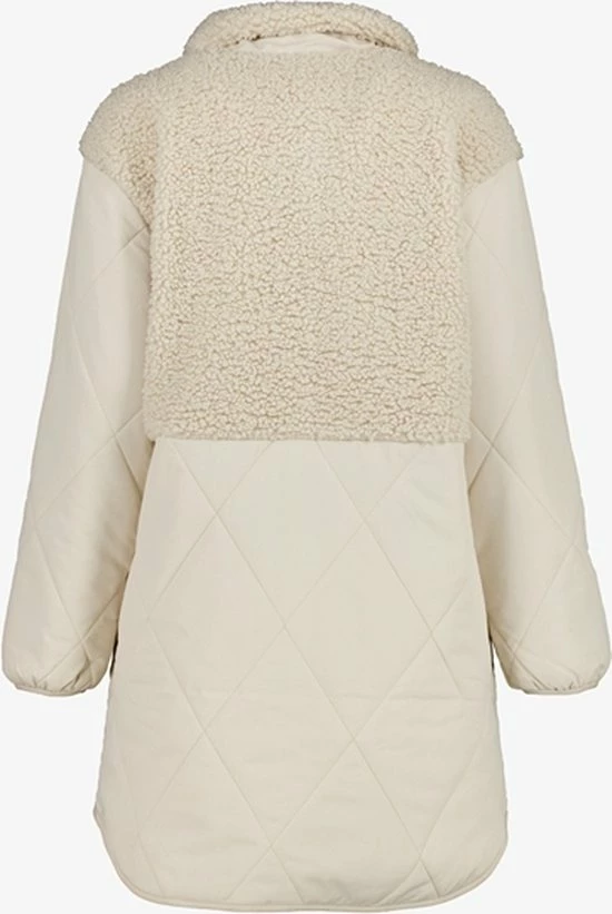 Beige winterjas voor dames uit de TwoDay collectie. Voorzien van een hoge kraag, lange mouwen en een borstzakje. Voorzien van ritssluiting en twee steekzakken. De jas heeft een zachte teddy stof aan de buitenzijde. Gemaakt van 100% polyester.
