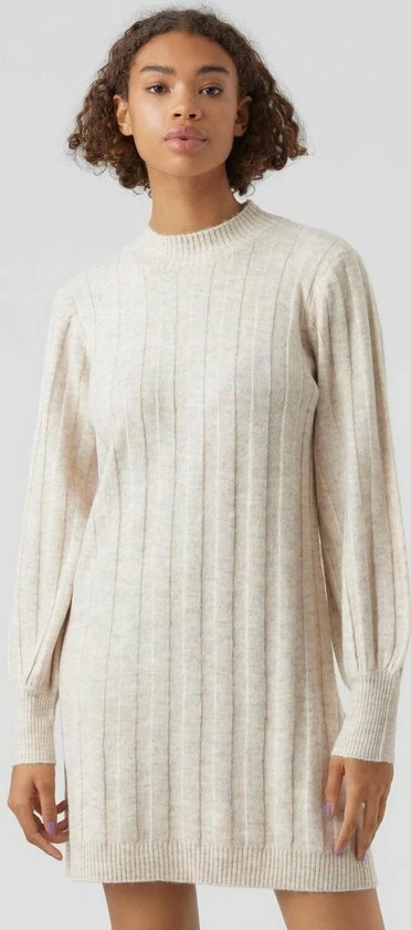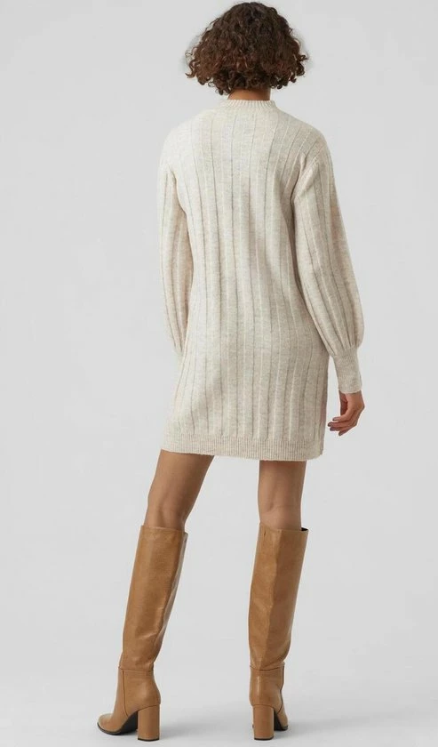 Comfort kent geen grenzen met een gebreide jurk. Met deze stijl haal je een klassieke garderobe must-have voor de koudere dagen in huis. Combineer het met een panty en lange, chunky laarzen voor een moderne alledaagse look. Voeg simpelweg een paar coole accessoires toe om het gemakkelijk om te toveren tot een gelegenheidslook – Type product : Gebreide jurk- Hals : Hoge hals- Mouw lengte : Lange mouwen- Mouwen : Ballonmouwen- Manchetten : Geribde mouwuiteinden- Lengte : Boven de knie