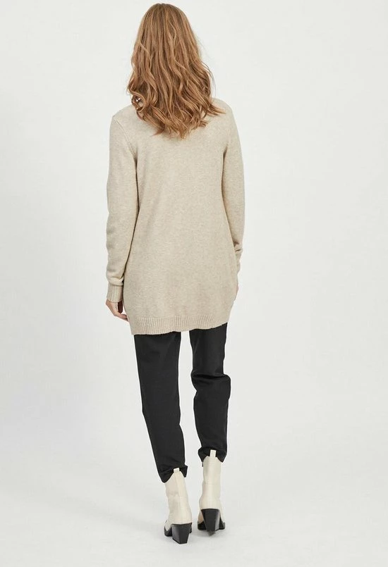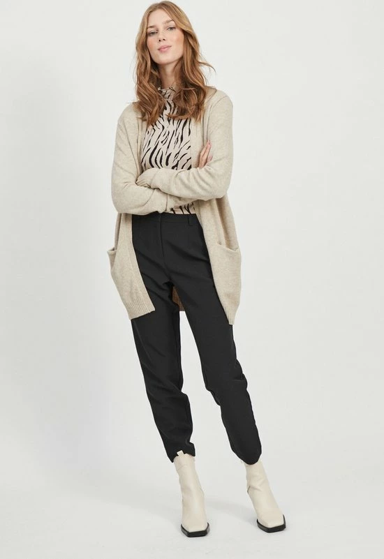 VILA vest in gemaakt van een zachte brei kwaliteit. Voelt heel fijn aan op de huid. Heeft twee zakken en geen sluiting en valt op de bovenbenen.